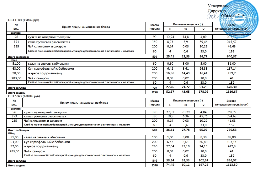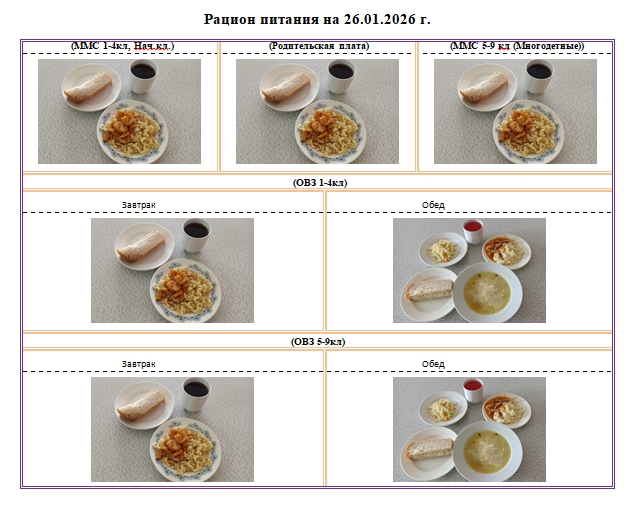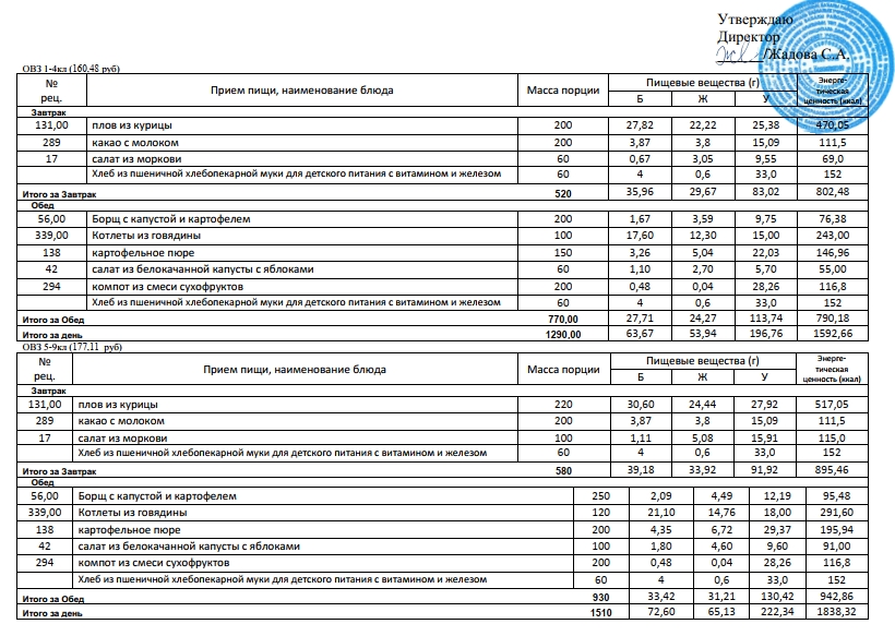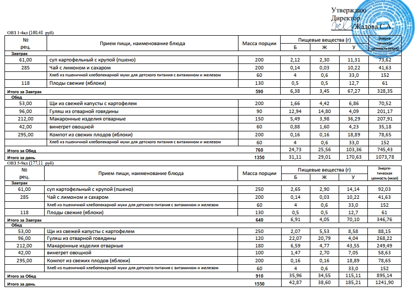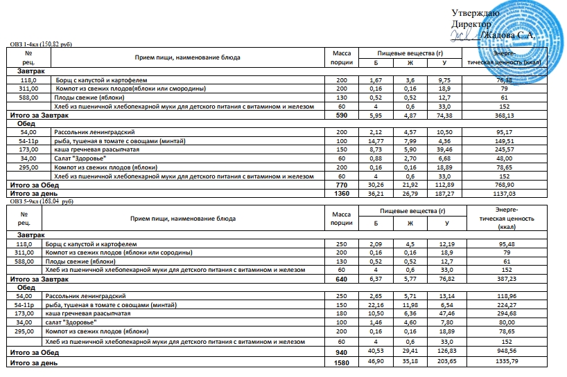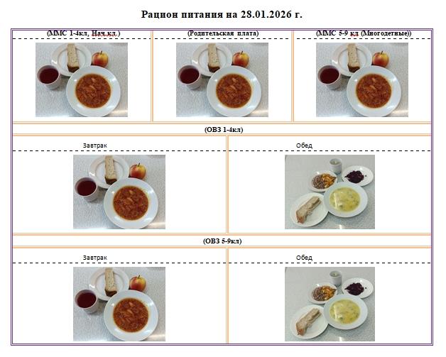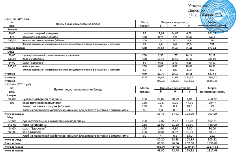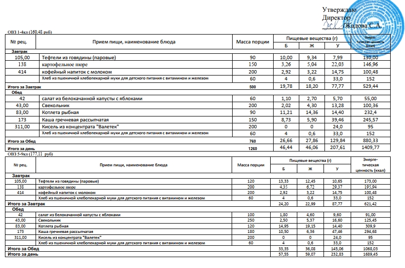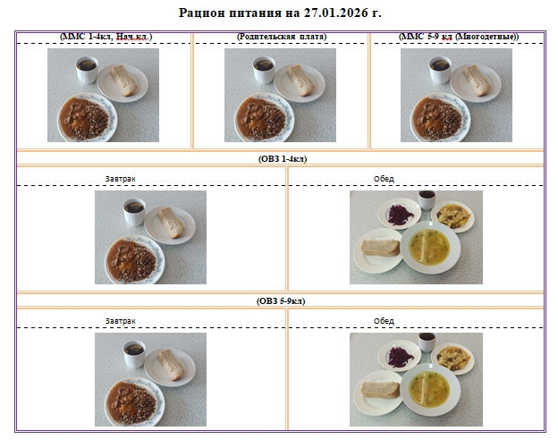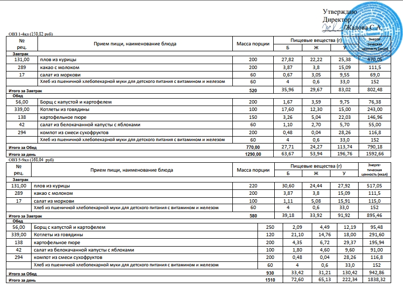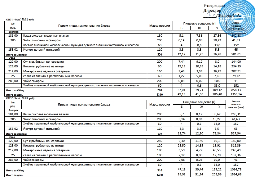 Фотографии рациона питания детей и ежедневного меню
