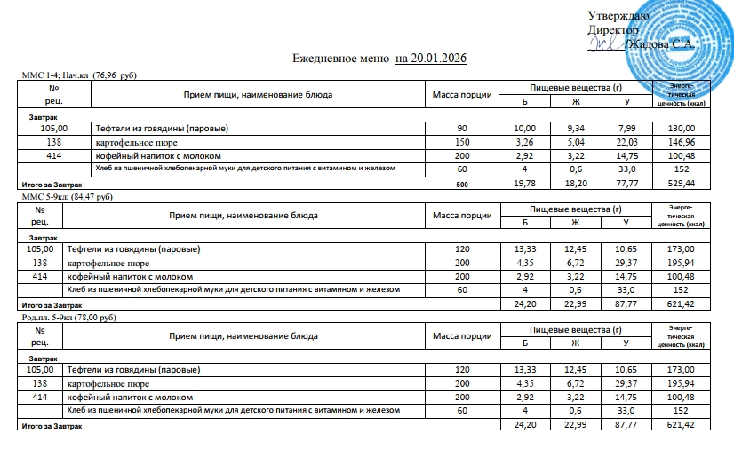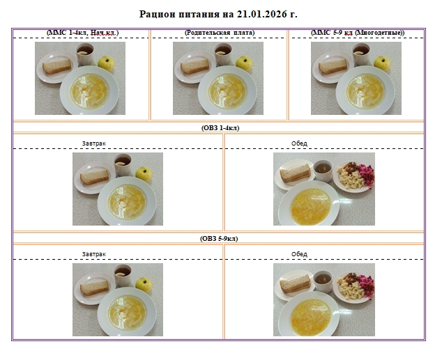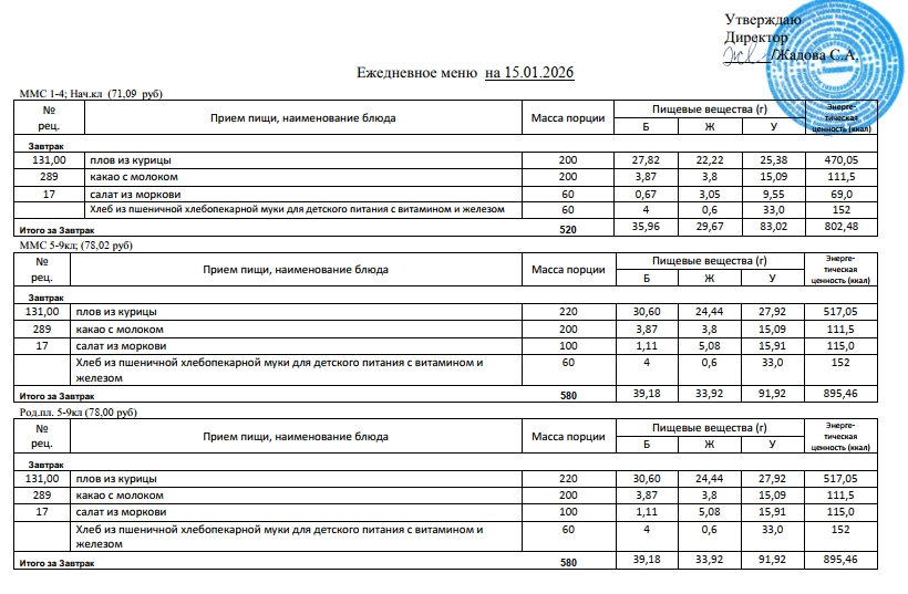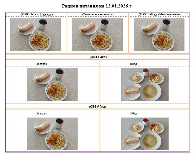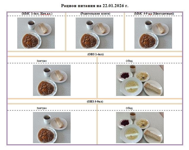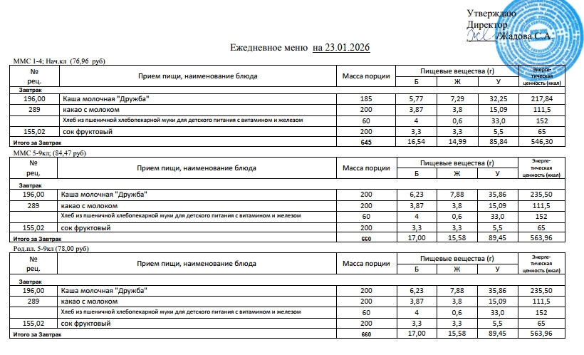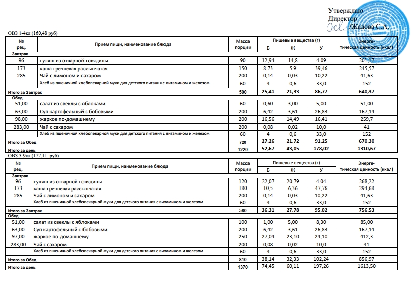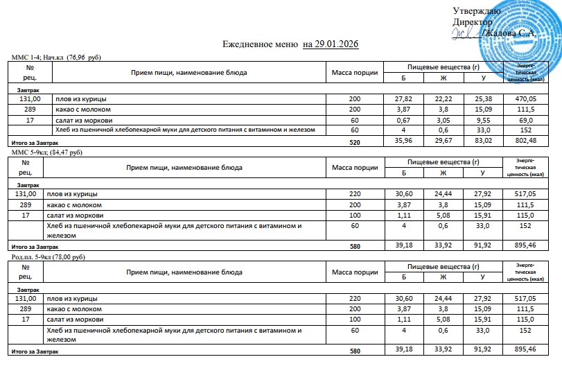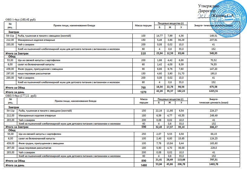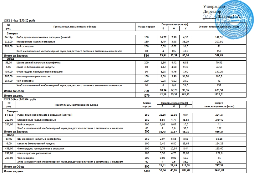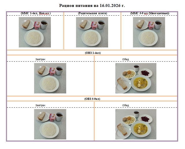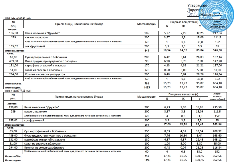 Фотографии рациона питания детей и ежедневного меню