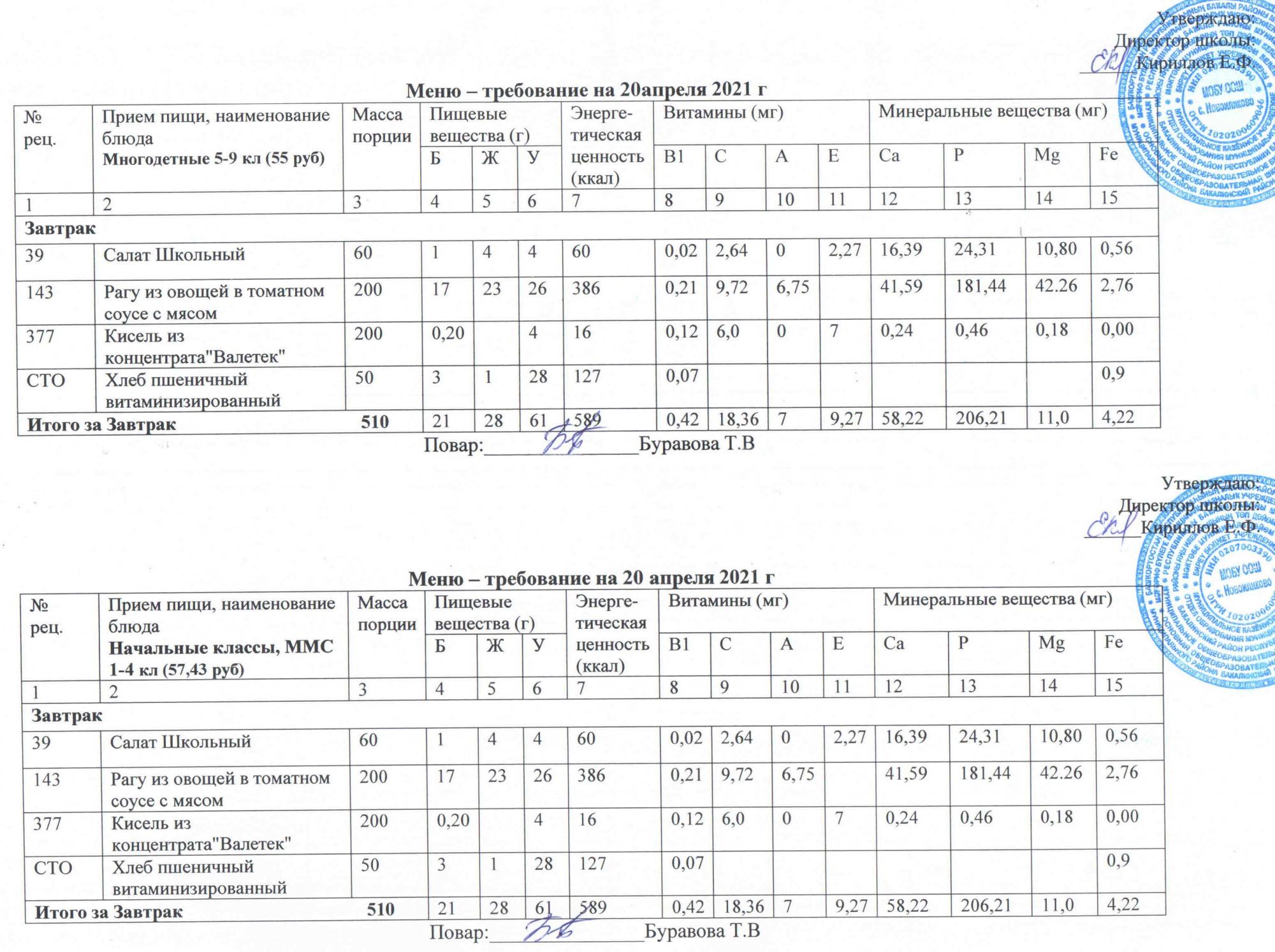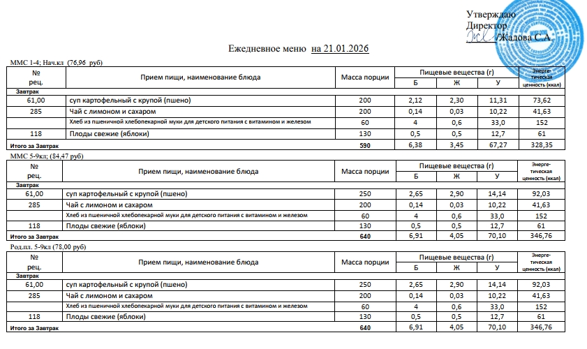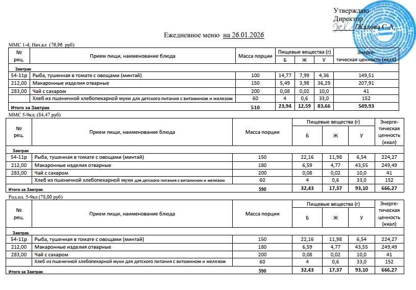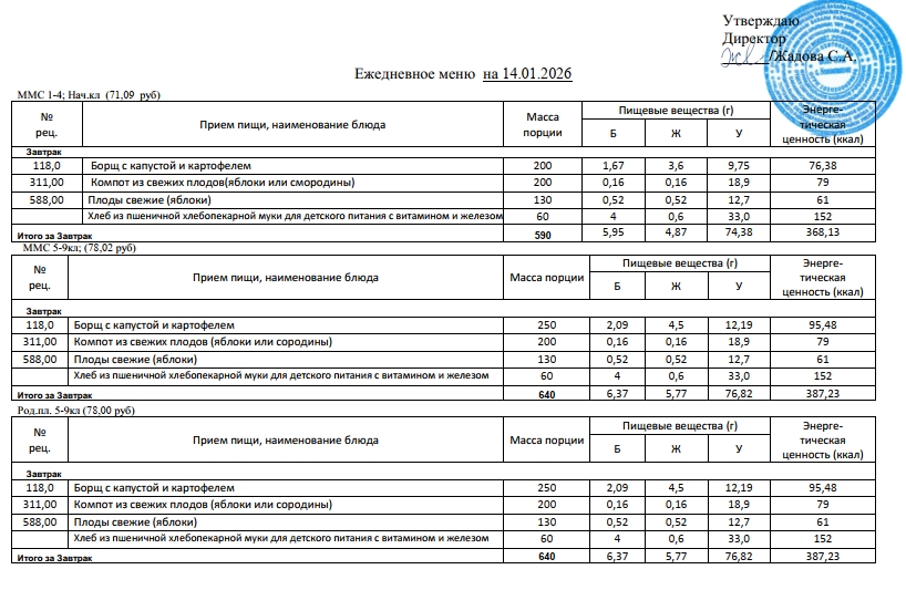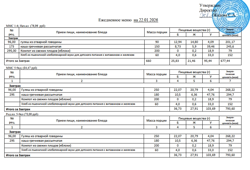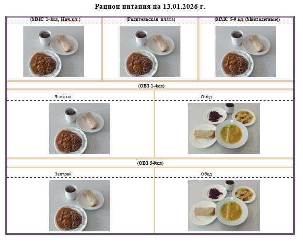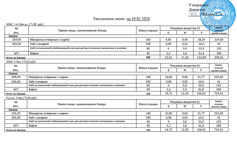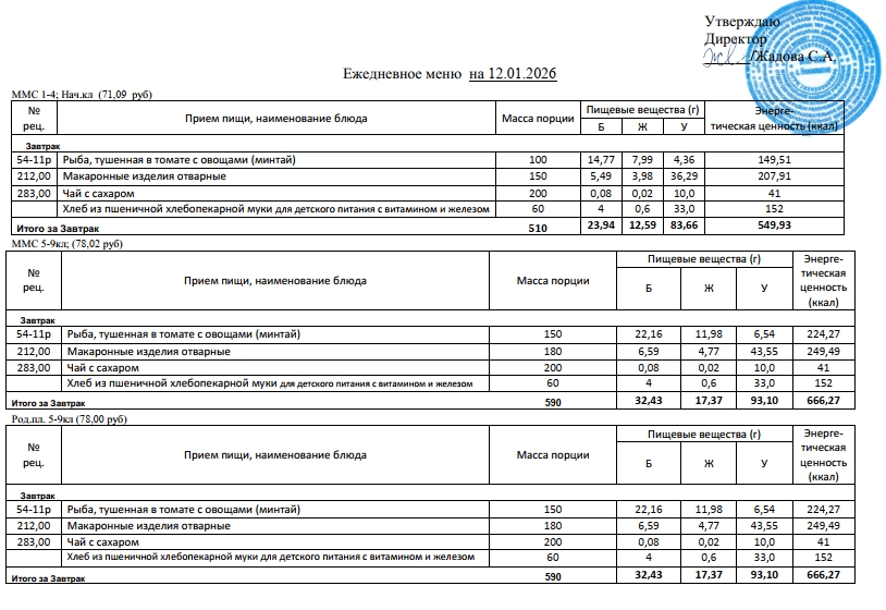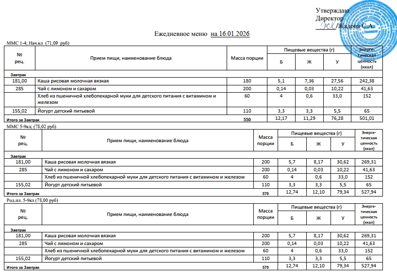 Фотографии рациона питания детей и ежедневного меню